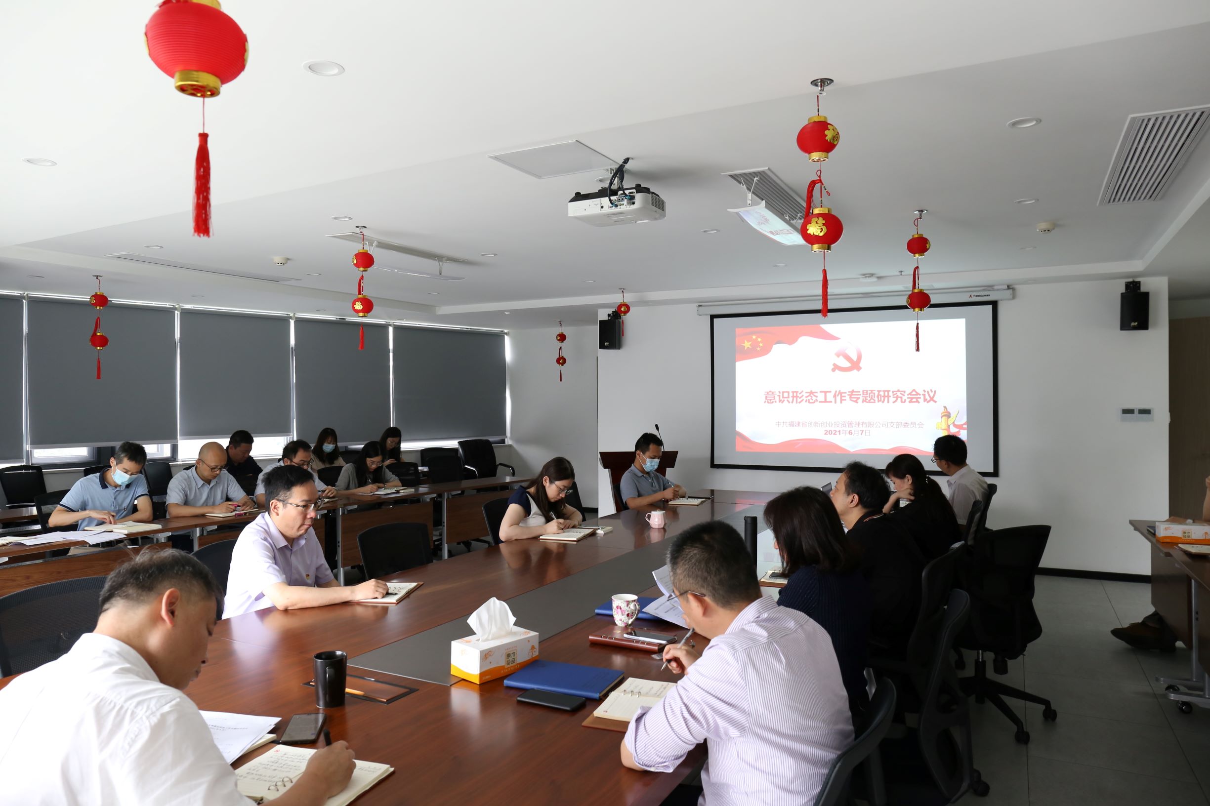 6月7日,福建创新投党支部召开全体党员大会,专题研究意识形态工作。公司党支部书记、董事长陈颖同志主持会议,全体党员干部参加会议。