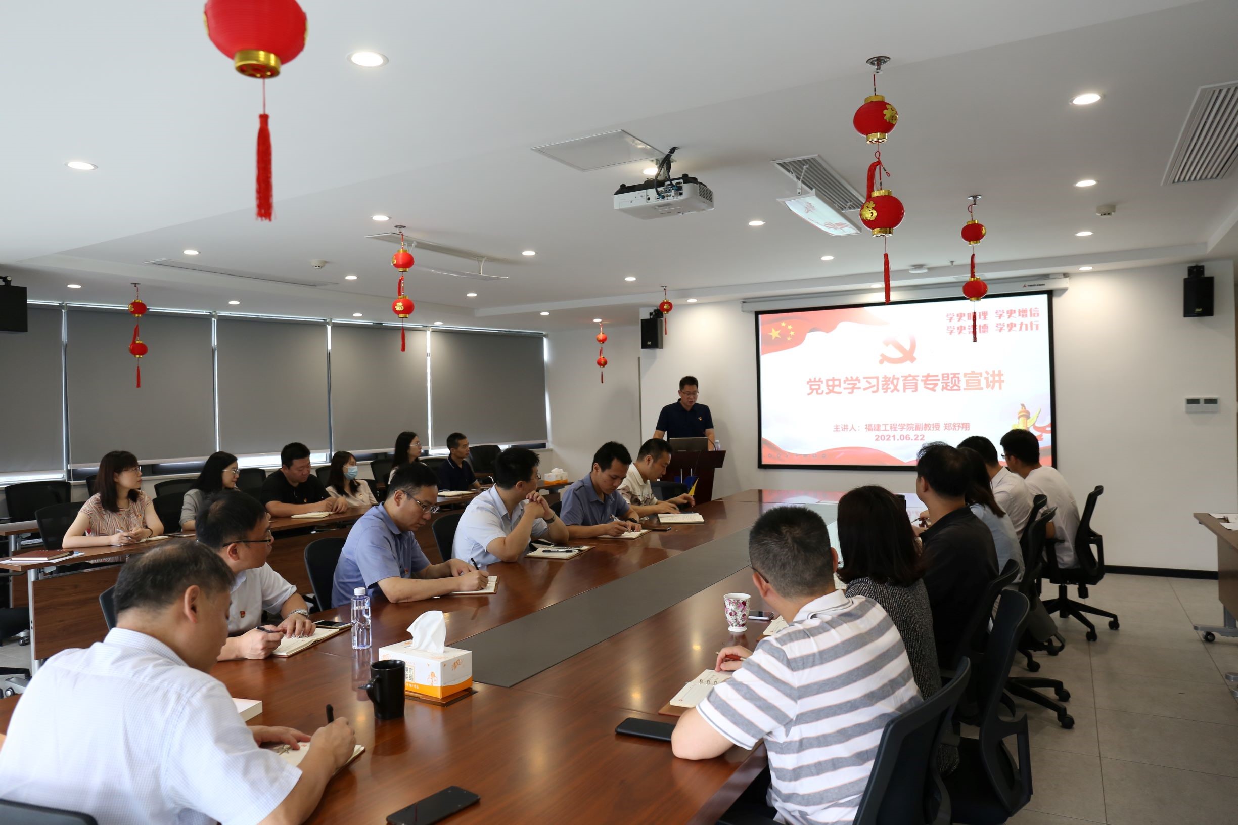 为扎实开展党史学习教育,引导党员干部职工学党史、悟思想、办事实、开新局,推动创投工作高质量发展,6月22日,福建创新投党支部邀请福建工程学院马克思主义学院副教授、“福建青年教师团”成员郑舒翔同志,为公司全体党员干部和职工代表作题为《从中国共产党百年历史看党的建设》的专题宣讲。